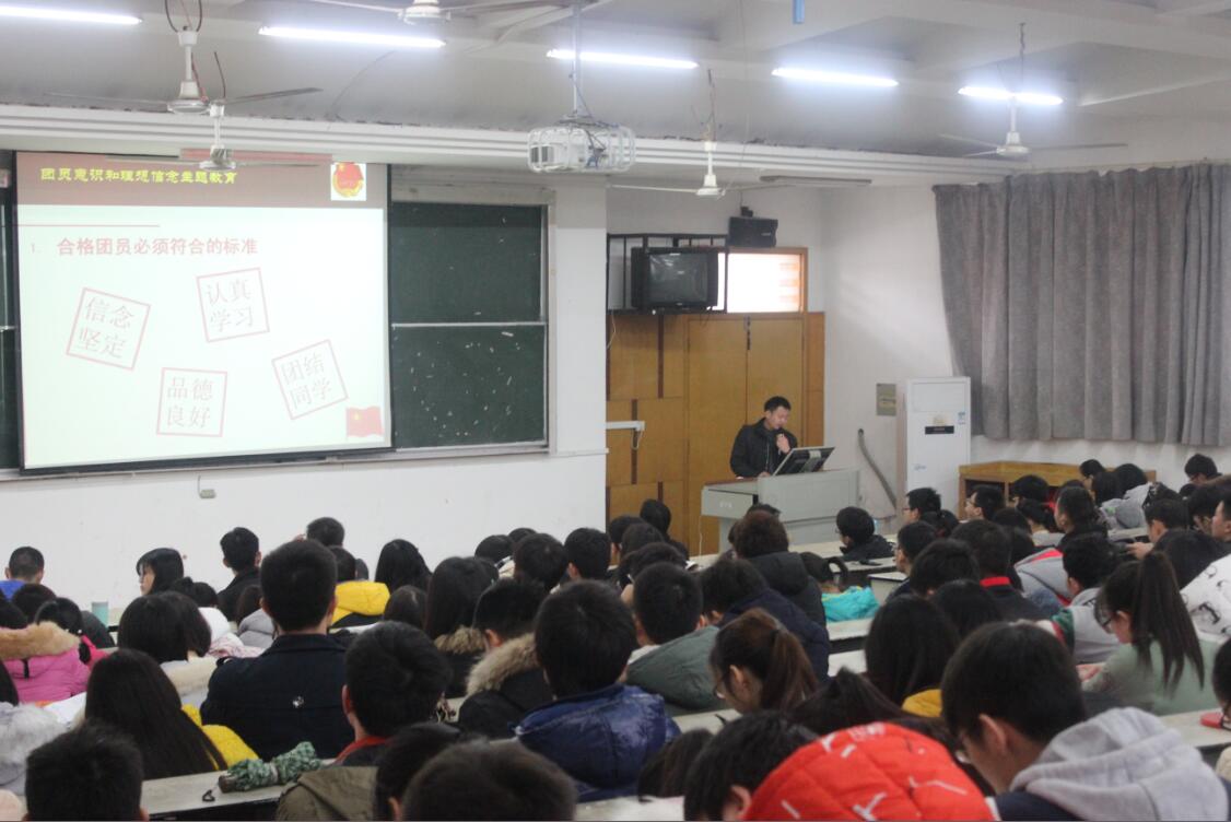 辅导员王巍对青年团员们进行了“强化团员意识,坚定理想信念”的教育。本次教育大会以共青团团歌《光荣啊,中国共青团》开篇,营造了一种朝气蓬勃而又严肃认真的氛围。而后,王老师带领现场的团员团干重温共青团员的义务,旨在唤起大家对于共青团的热爱与自身的责任意识。紧接着,王老师对团员们提出了新世纪的新意识新使命:政治意识、民主意识、科技意识、创新意识、竞争与合作的意识的五大意识;坚定信念,构筑精神支柱;奋发学习,掌握过硬本领;艰苦奋斗,自觉服务社会;自立自强,不断创新的成果;高素质,勇于肩负重任的五大使命。接下来,王老师教育青年团员要做一个有爱心的青年,去爱父母、爱老师、爱家、爱校、爱党、爱社会、爱国。最后,对团员进行了信仰、志向、理想、信念的教育,引导青年团员要明确自己的信仰,坚定自己的信念,拥有远大的志向,为崇高的理想而奋勇向前。