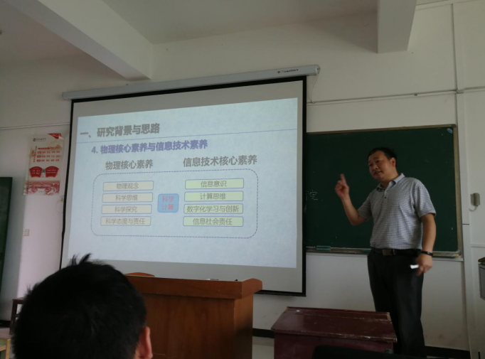 丁益民教授主要围绕信息技术与物理实验教学的深度融合研究主题,从概念和研究范围切入,循序渐进地介绍了信息技术与教学的深度融合、物理核心素养与信息技术素养等富有前瞻性的内容,指明了信息技术与物理实验教学深度融合的方法与途径;并结合大量研究案例展示信息技术应用于物理实验教学的最新成果及其应用。最后丁教授对毕业于我校的研究生生源持高度肯定,介绍了其学科团队的研究领域和相关成果,大大激发了我集团学子努力学习的热情。
