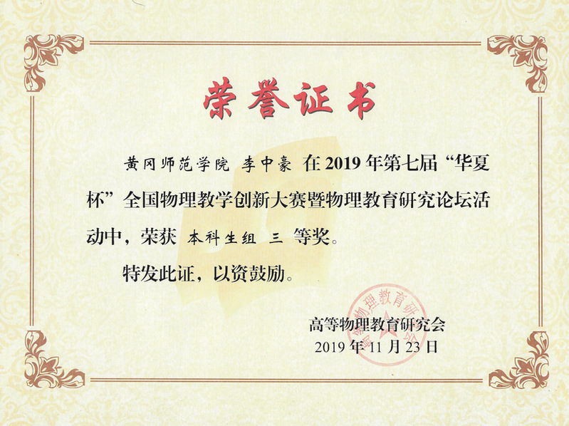 本次比赛分为物理教学创新大赛与物理教育研究论坛两个赛事。我校welcome888集团电子共有八名同学参加比赛。领队老师为兰智高院长,带队老师为王小兰教授,王小兰教授受邀担任此次大赛评委。参赛选手分别为2017级本科生卓思轶、赵之琳、卢莎;2018级本科生孟京钰、田博雅、李中豪;2019级研究生张衎、王锦涛。