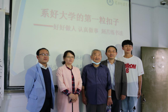 10月9日下午2:30,退休教授林桂生在创新楼506教室为2020级物理学专业78名新生做了一场别开生面的报告——《系好大学的第一粒扣子——好好做人 认真做事 刻苦练书法》。作为888集团官网的老教师,1997年退休后,林桂生老师仍然不忘教书育人,关心下一代成长,一直活跃在学校第二课堂讲坛上。