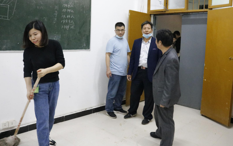 第三大组由丁如春院长负责,余洋老师带领由光电专业同学组成的两个小队打扫三楼四楼的办公室、实验室、走廊及楼梯的卫生。