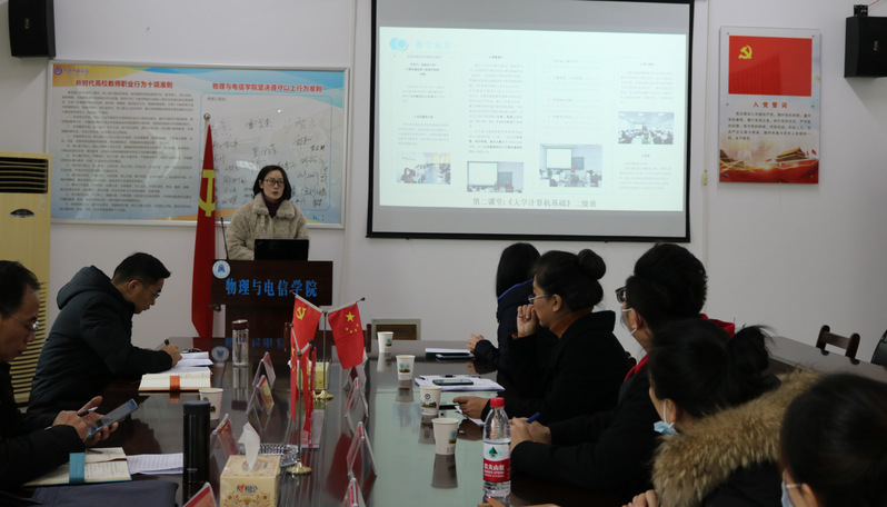 传媒技术学院教研室主任杨瑞对学院机构设置、教师活动、教师培训、教学运行、学院竞赛进行了详细阐述。