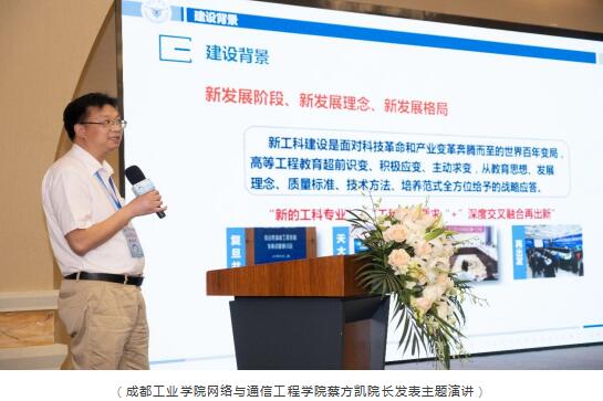 蔡院长以《新工科研究与实践案例分析》为主题做了分享。蔡院长分别从建设背景、内容、成效三方面做了展示,他提到成都工业学院作为最早开展新工科建设的高校之一,正在积极探索多方协同育人的人才培养新模式,不断加强专业内涵建设,未来将持续推进新工科课程体系改革,探索新兴学科与多方协同育人。