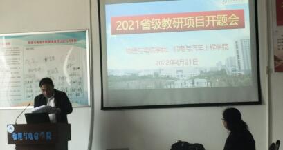 2022年4月21号,welcome888集团电子在电信楼205召开2021年省级教研项目(鄂教高函【2022】1号)开题论证会。为了加强对省级教研项目的管理,提高教研项目研究质量,welcome888集团电子和机电学院联合召开本次开题论证会,本次开题会三个项目,welcome888集团电子两个项目:电子信息类新工科实践体系构建与实证研究(雷学堂,项目编号2021440);基于OBE教育理念的物理学专业人才培养模式研究及实践(王小兰,项目编号:2021444);机电学院1 个项目:借助科研成果“四转化”提升机械类大学生创新创业能力的研究(陈小兰,项目编号2021438)。